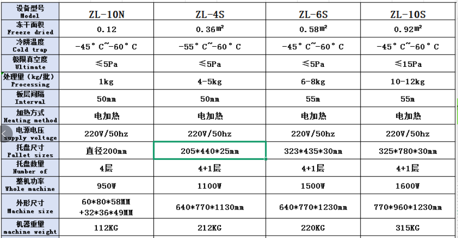 實驗型凍干機設(shè)備參數(shù)